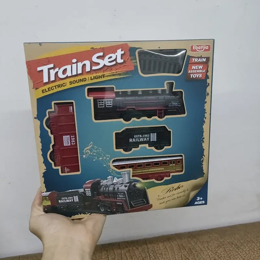 Vintage Steam Engine & Long Track Train Set for Youngsters - Electric Toy with Lights and Sounds, Durable ABS Construction