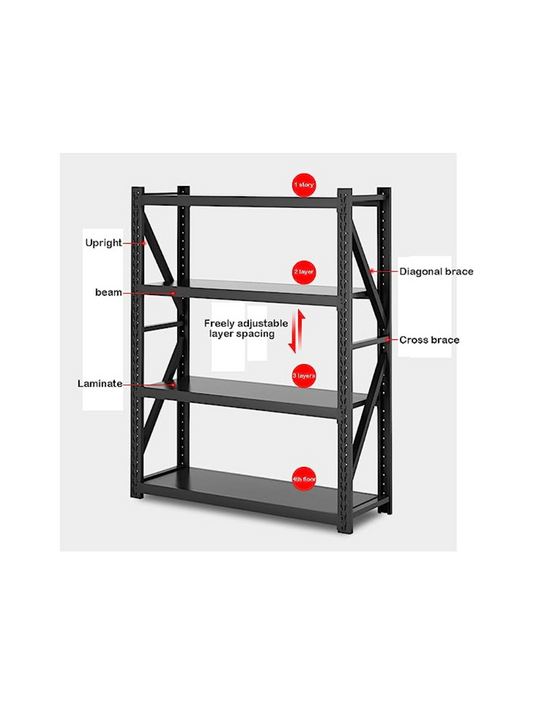 4 Tier Heavy Duty Shelving Rack 2.0m Commercial Shelves 1200kg / 300kg per Shelf
