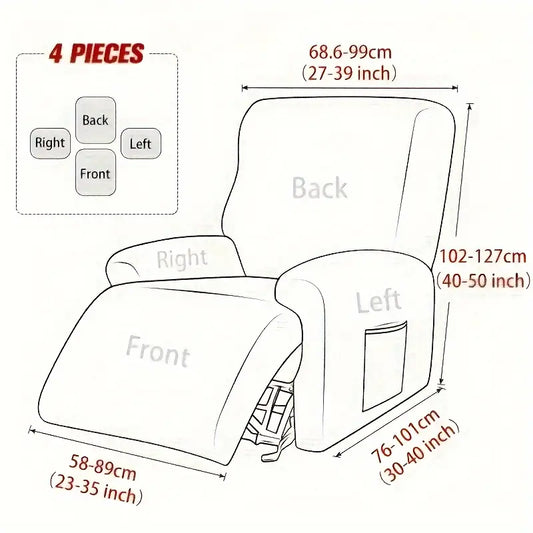 4pcs/one piece elastic thickened full-cover recliner cover- Black