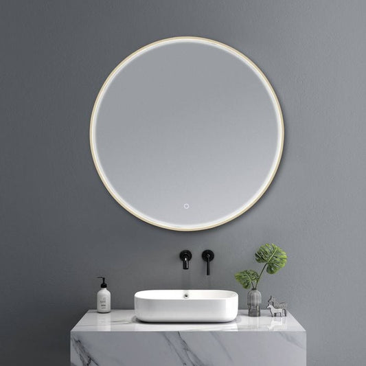 Barelli 800 x 800mm Brushed Brass Toscana Framed Round Mirror LED Frame Lit