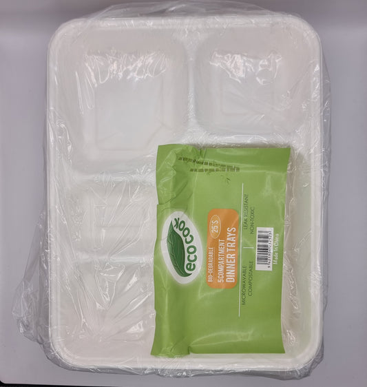 Biodegradable Eco 5 Compartment Dinner Tray 25pcs
