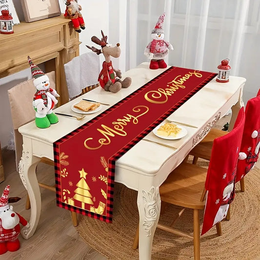 Merry Christmas Dwarf Table Runner - 35.56cm x 180.09cm Festive Holiday Decor, Polyester, Perfect for Home & Party, Christmas Decor