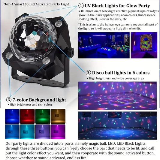 1pc Bring The Party To Life With Sound Activated RGB Disco Ball Lights - 7 ModesRemote Control, Perfect For Home Room Dance Parties, Bars, Karaoke, Weddings & More!
