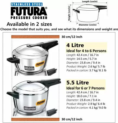 Futura Stainless Steel Pressure Cooker 5.5 Litre