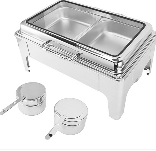 Chafing Dish Glass Container with Stainless Steel Body and Lid